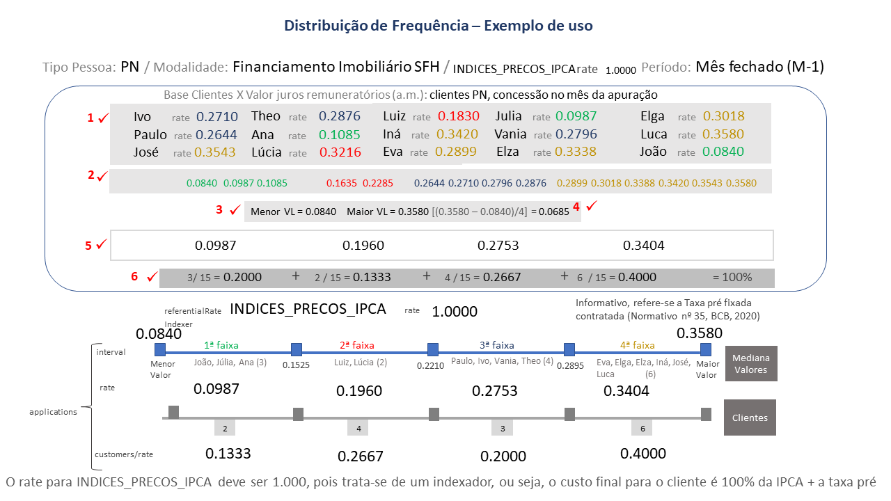 A princípio não há exigência normativa para se apresentar a distribuição de frequência para essas outras modalidades de crédito relacionadas à cartão de crédito. Conforme a Instrução Normativa BCB 35, de 2020, somente recairia essa exigência, no caso de cartão de crédito, sobre as operações de crédito rotativo e de parcelamento do saldo devedor da fatura, que já são operações que observam alguma espécie de padronização. De qualquer forma, esse é o escopo mínimo de dados, o que não impede que o GT e o conselho deliberativo deliberem por sua expansão em algum momento.