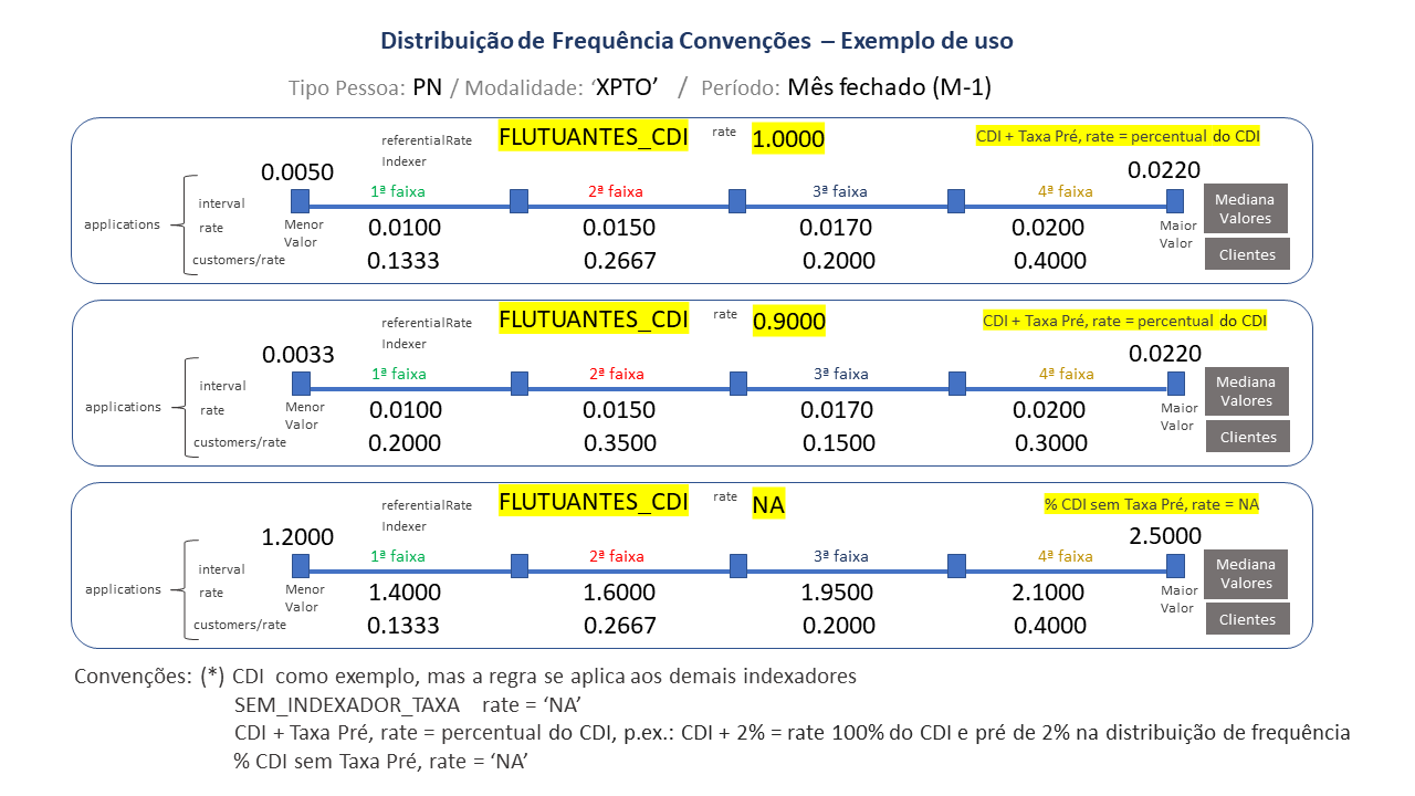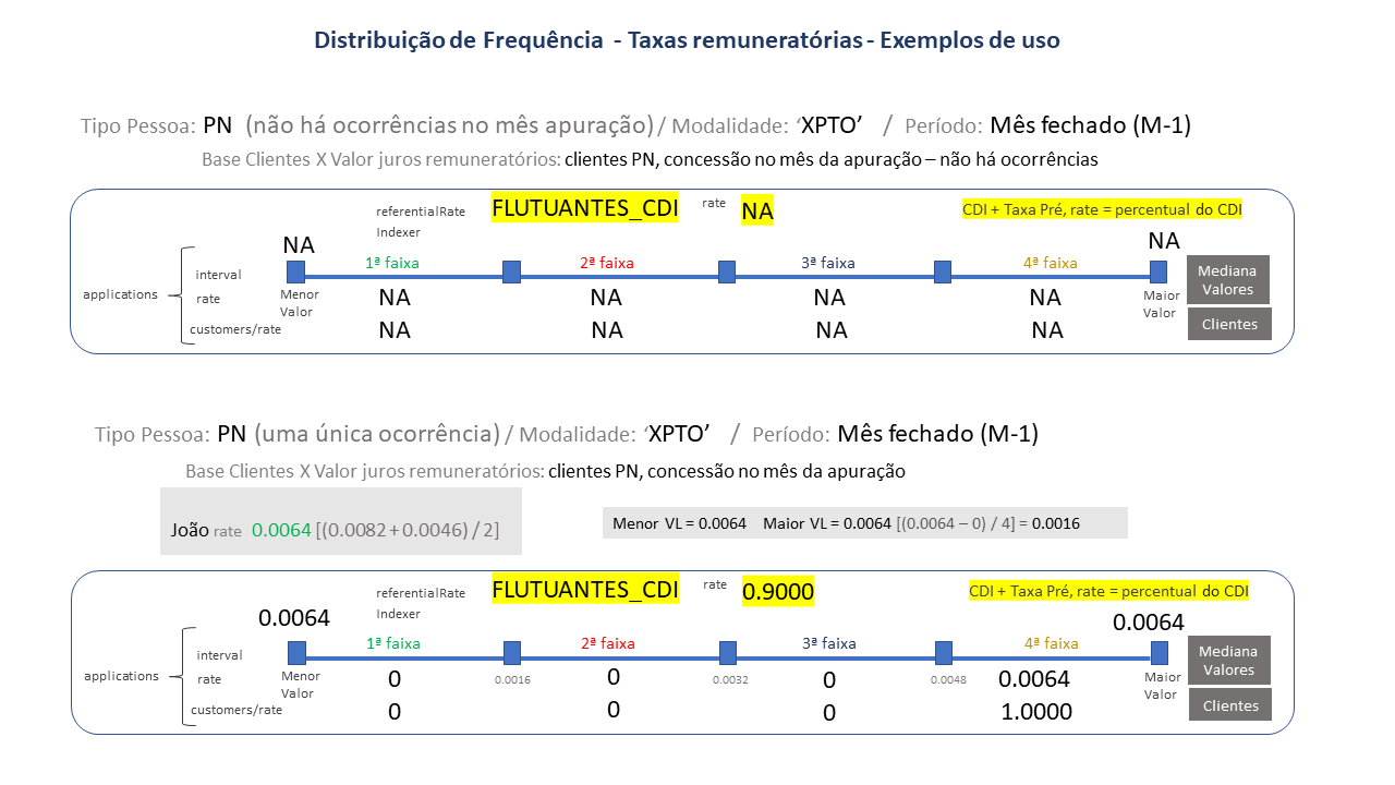 Sendo consideradas somente as operações “contratadas” no mês da apuração no cálculo e disponibilização de informações relativas a distribuição de frequência de Taxas remuneratórias.